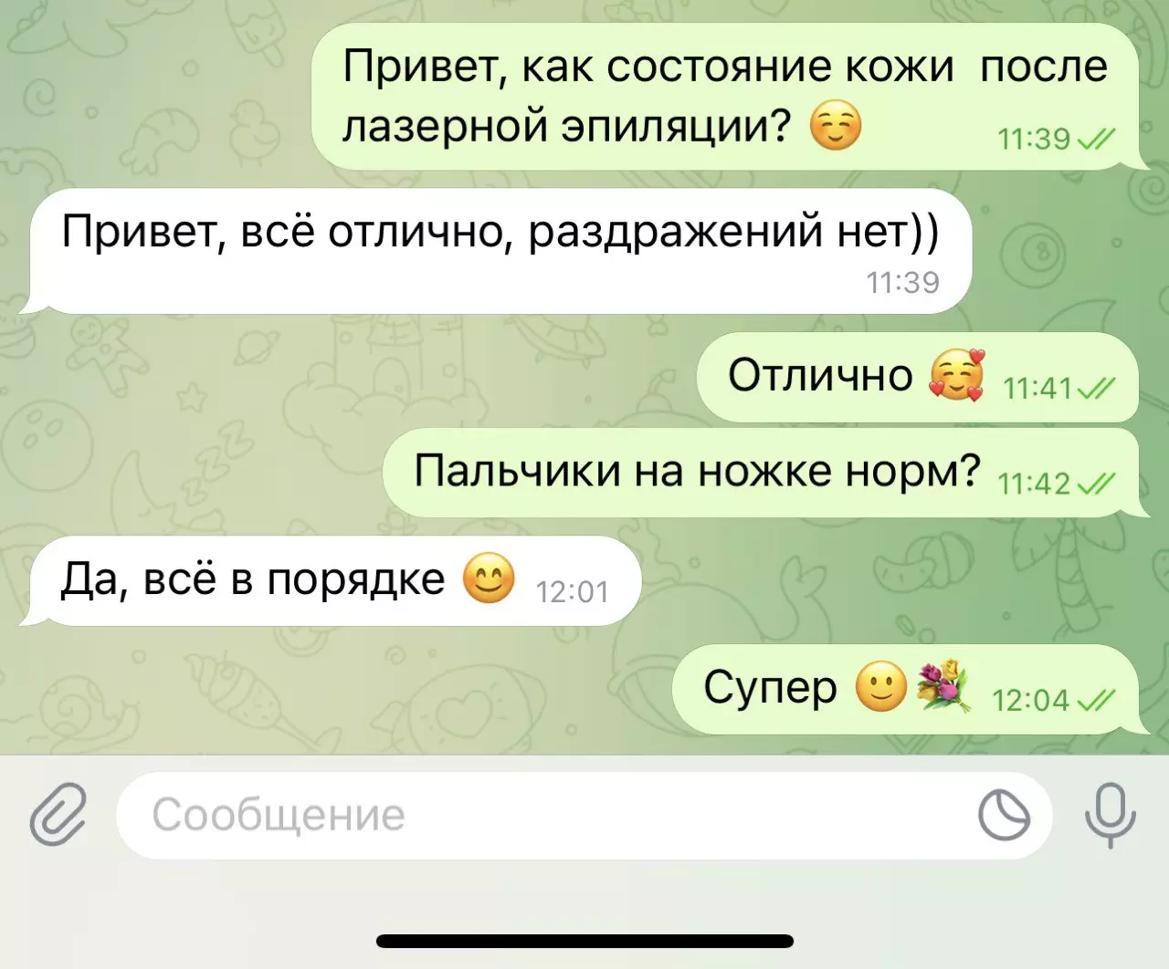 ✔ Працівники, що проводять сеанси, — дипломовані спеціалісти з лазерної епіляції з досвідом роботи.